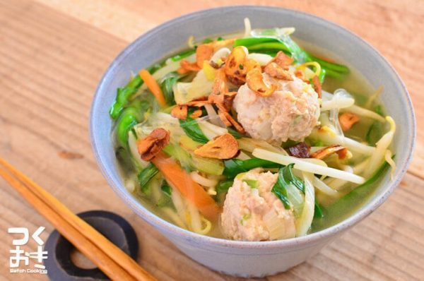 鶏団子を使った人気のレシピで、お客さんをおもてなししましょう。もやしやニラをたっぷり入れて栄養バランスを整えています。