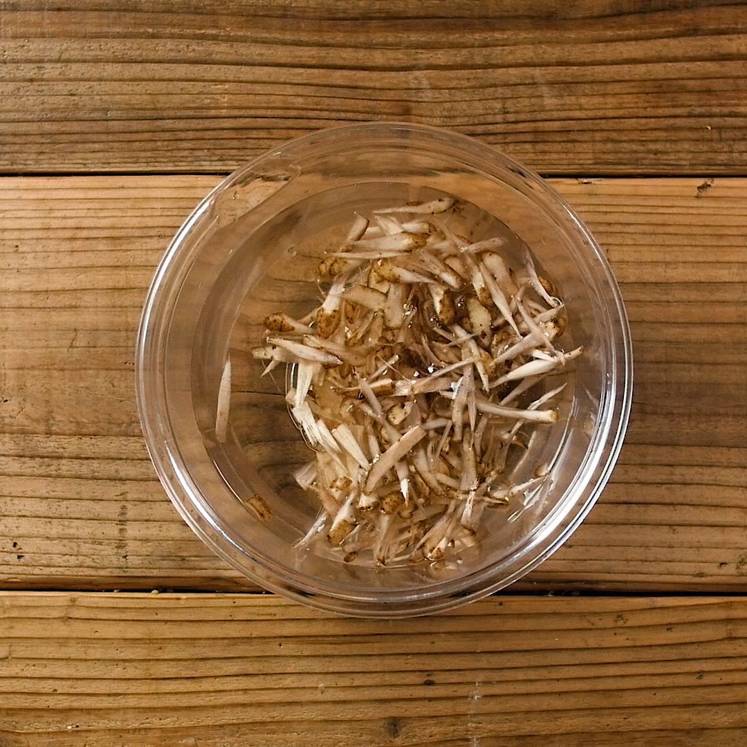 ごぼうはささがきにし、水にさらします。