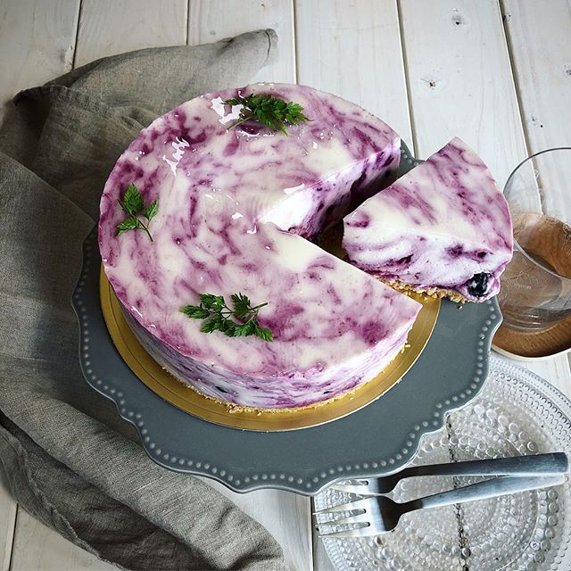 こちらはブルーベリーで作るレアチーズケーキです。ブルーベリーの甘酸っぱさが美味しいレシピで、チョコやこってり甘いものが得意でない方におすすめ。