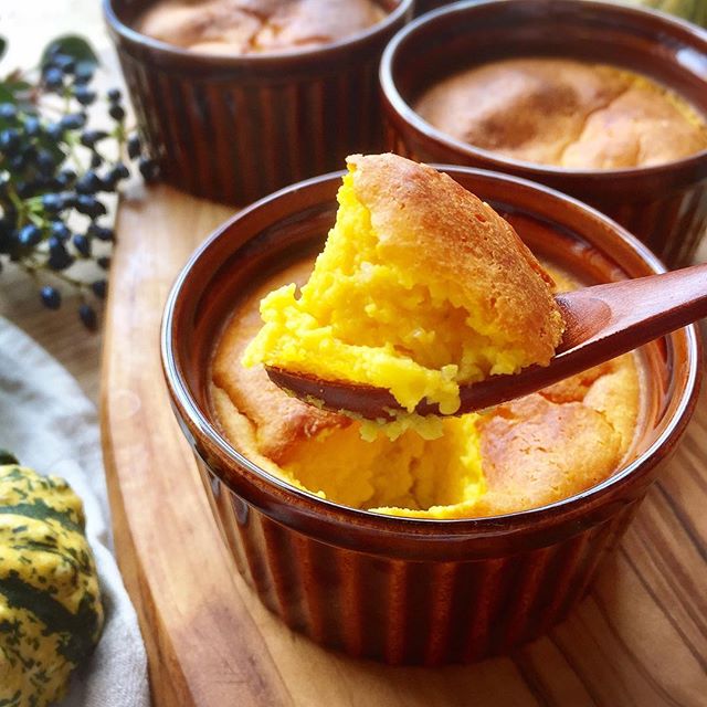 こちらはかぼちゃを使ったチーズケーキで、かぼちゃの黄色がとても可愛いレシピ。