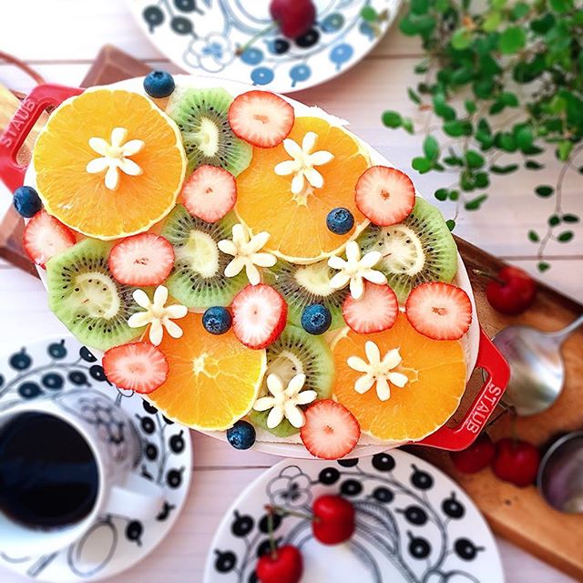 マーブル上にすると本格的なケーキに見えますね。さっぱり系を手作りしたい時におすすめのレシピです。