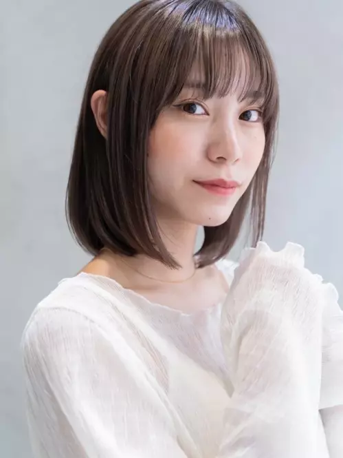 ナチュラルな毛先の動きがポイントのロブスタイルです。シースルーバングで目元に抜け感をプラス。アッシュ系カラーで透明感たっぷりの髪色に。