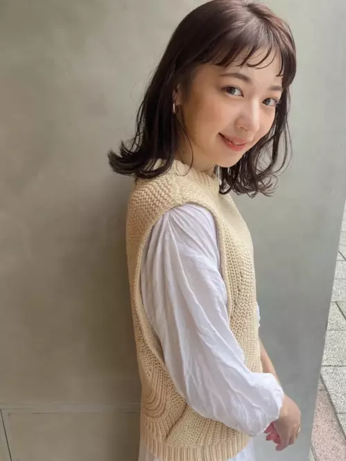 鎖骨ラインの長さに設定し、前上がりにカットしたロブスタイルです。全体にレイヤーを入れ、ふんわりエアリーな質感に。コテでワンカール巻くだけで可愛く仕上がります。