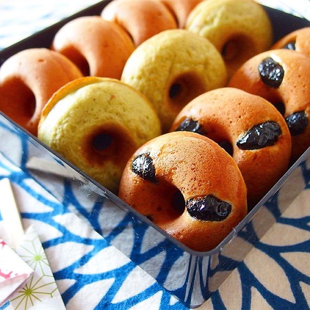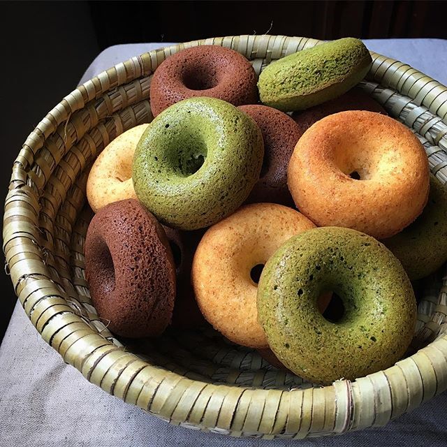 抹茶やココアなど生地に色を付けてやくと、デコレーション無しでも可愛いドーナツができておすすめ。