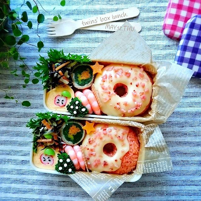どんなご飯でもドーナツ形に詰めて型抜きするか、型がなければココット皿とラップなどで、ドーナツの形を作ることができます。