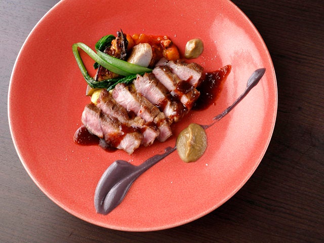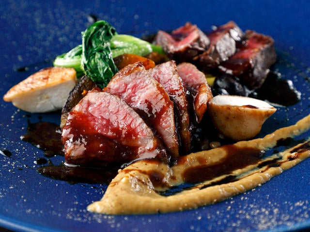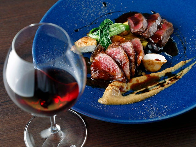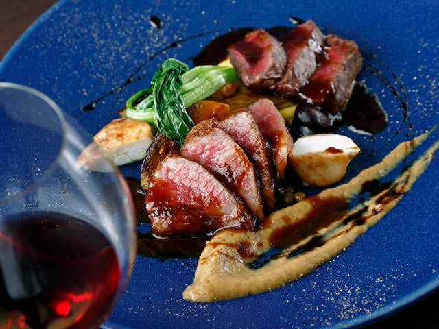 ちなみに、厳選した肉のおいしさはランチでも楽しめる。写真上は、プリフィックスの「選べるメインランチ」などで楽しめる「山形豚ロースのロースト ラタトゥイユ添え」。メインは肉料理または魚料理から選べることができるうえ、前菜盛り合わせ、デザート、食後の飲み物までついたお得な内容だ。