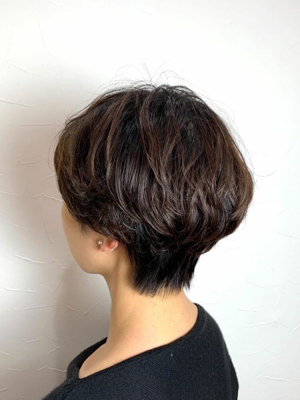 40代にも似合う冬の可愛いショートヘアならこちらはいかが?キュートなマッシュショートベースでパーマがふわふわと髪に動きをつけてくれるので可愛い雰囲気がアップ!