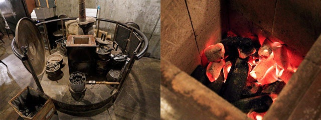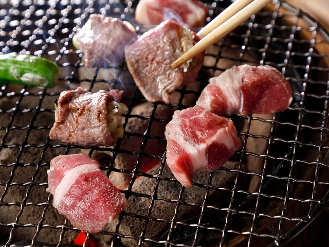 ジンギスカンは、網焼きと同じく七輪で楽しむ。ジンギスカン鍋は脂が七輪の中に落ちる穴空き仕様なので、羊肉のうまみだけが残る絶妙な焼き上がりもうれしい。