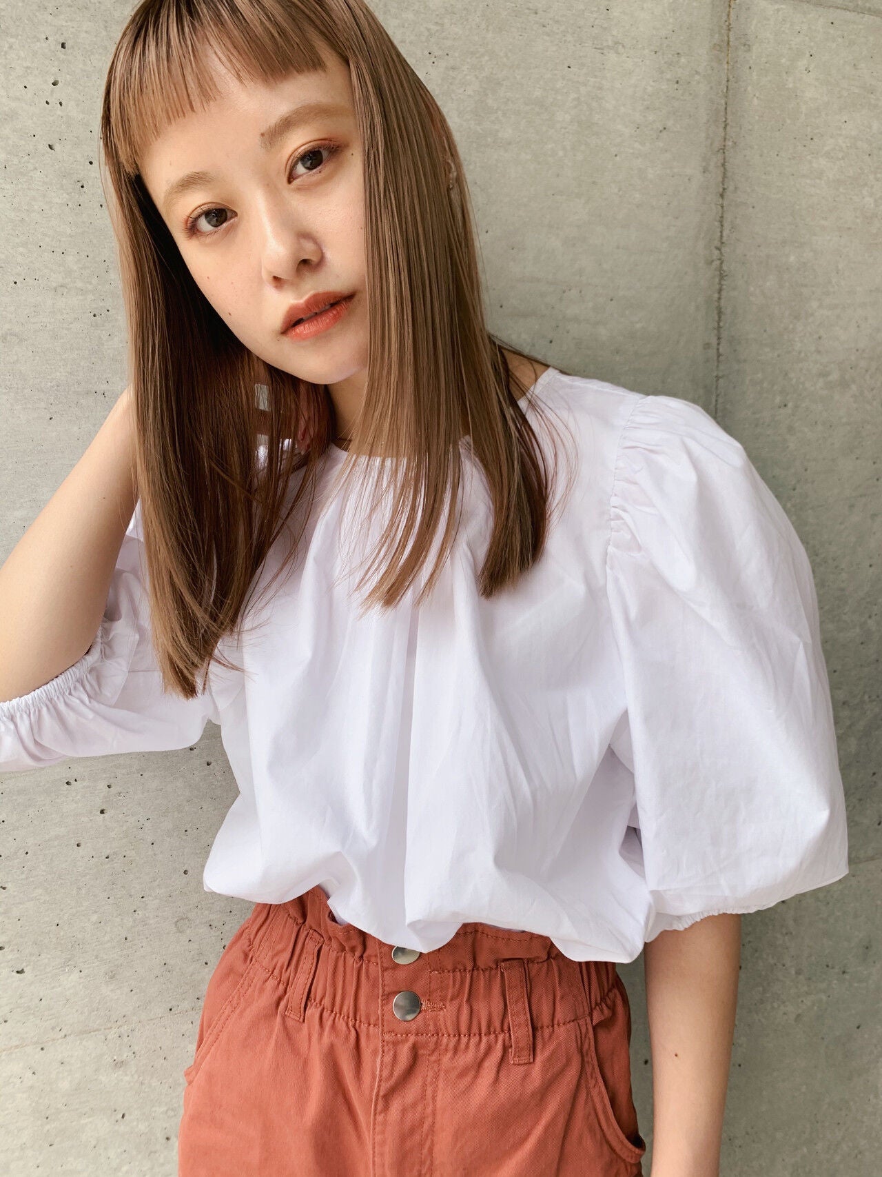 ロングの髪の重たさを感じさせないオン眉ヘアスタイルは、垢抜け度抜群のヘアスタイルです。シーンを選ばずにおしゃれしたい人にピッタリです。