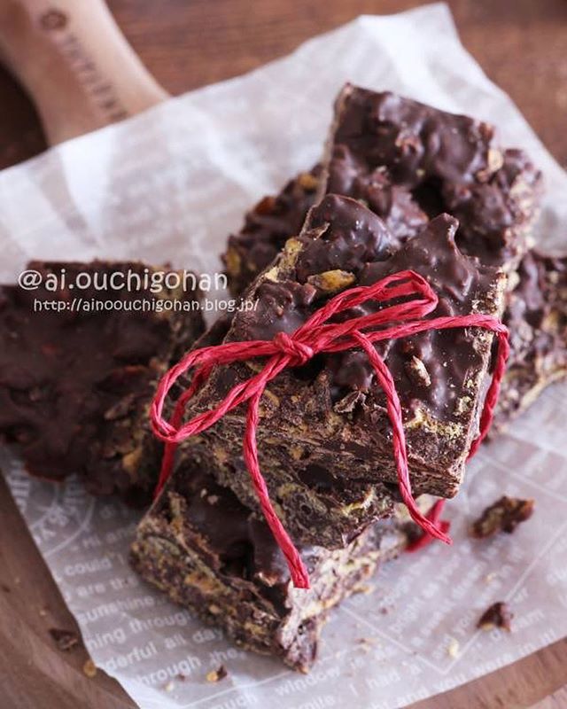 ホワイトチョコや普通のチョコで作るのも良いでしょう。バレンタインはこの2色のクランチで決まりですね。