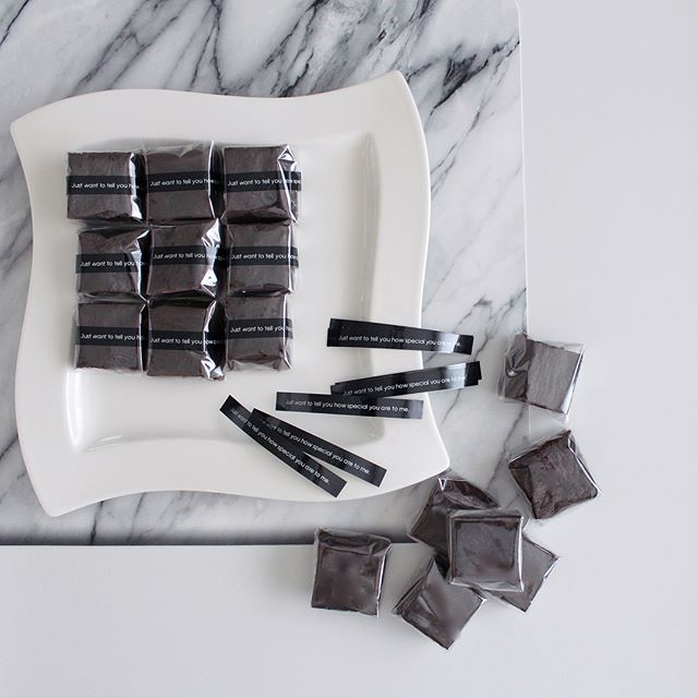 ガトーショコラのケーキを小さくカットして1つずつラッピングした可愛いお菓子です。