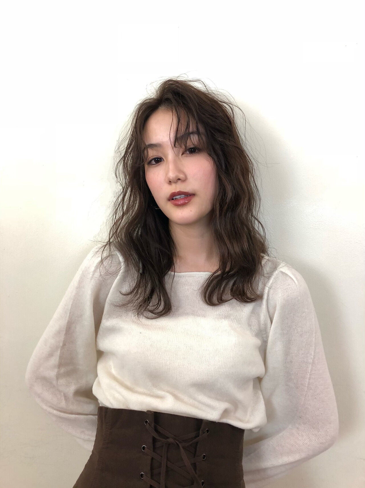 かき上げでつくる前髪も、大人っぽヘアスタイルになります。ふわふわのウェーブヘアは、フェミニンにもエレガントコーデにもピッタリです。