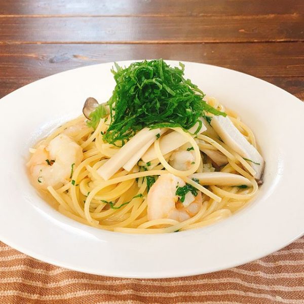 エビとたっぷり大葉のオイルパスタ