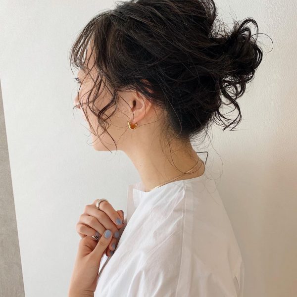 あらかじめパーマを掛けておくとスタイリングもラクチン。ヘアアレンジをするときも前髪は軽くするか、なしにすると黄みがかった顔色が明るく見えますよ。