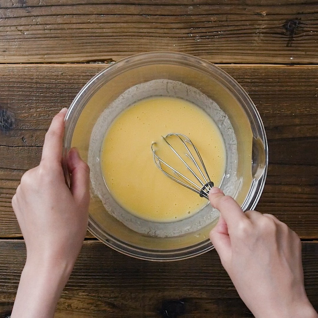 ボウルに卵を割り入れ、プレーンヨーグルト、レモン果汁を加えてよく混ぜます。