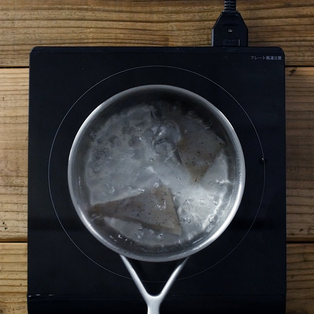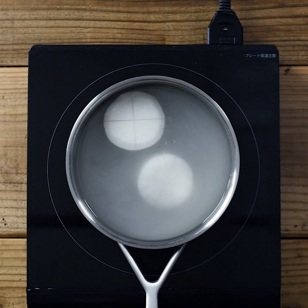 鍋に大根、米のとぎ汁を入れ、柔らかくなるまでゆでます。