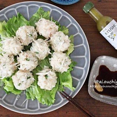 細くカットした焼売の皮をタネにつけてレンジで加熱するだけです。プリプリした食感で絶品の低カロリーレシピです。