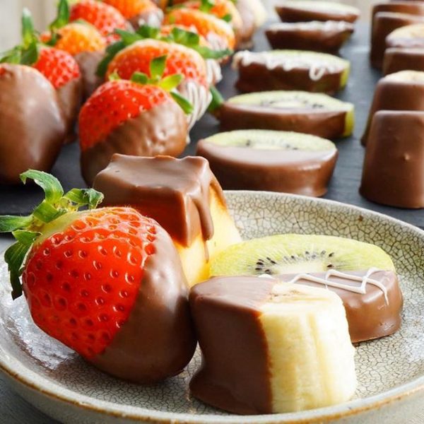カットしたフルーツにチョコレートを纏わせて冷やすだけでできるので、誰でも簡単に作ることができますよ。