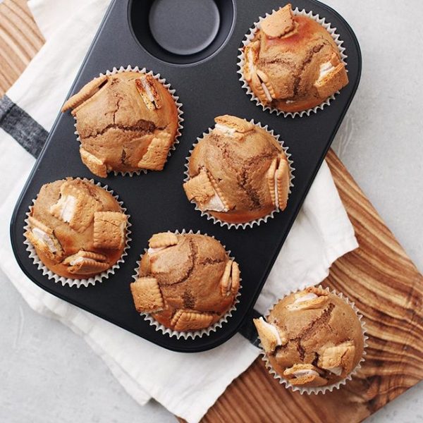 こちらのレシピは、市販のビスケット菓子をトッピングしたおしゃれなマフィン。