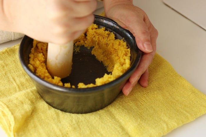 また、白い部分を入れると少しマイルドな味わいになるんですよ。でも、白い部分に苦みのあるときや黄色い部分だけできれいに作りたい場合は、りんごの皮のように剥いて皮の表面だけを使用します」