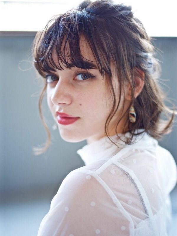 シースルー前髪やサイドに残した毛束で、大人っぽさの中にも若々しさを演出することができます。