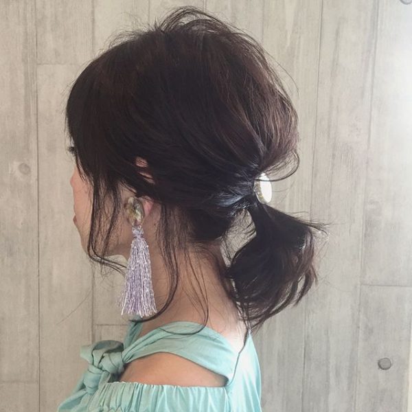 ミディアムヘアのローポニーテールは、ボブヘアより大人っぽく仕上がるのが嬉しいですよね。