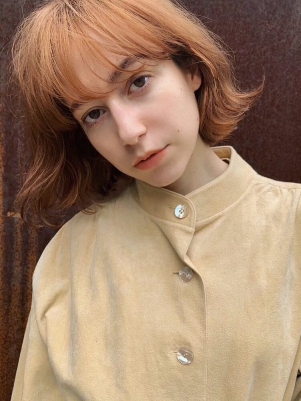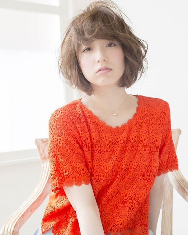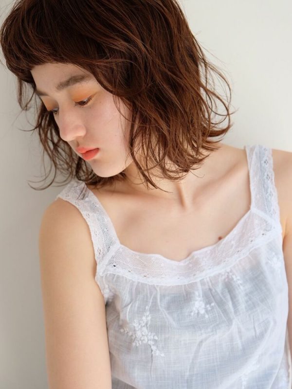 明るめのトーンのオレンジブラウンの透け感がボブスタイルによく似合いますね。