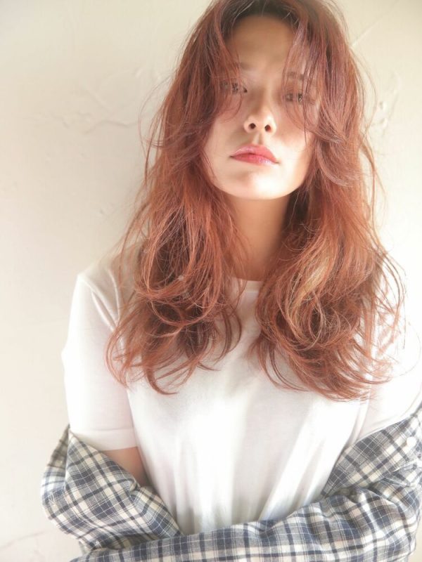 柔らかなオレンジブラウンとロングヘアがよく似合い、ガーリーな雰囲気に仕上がりますね。