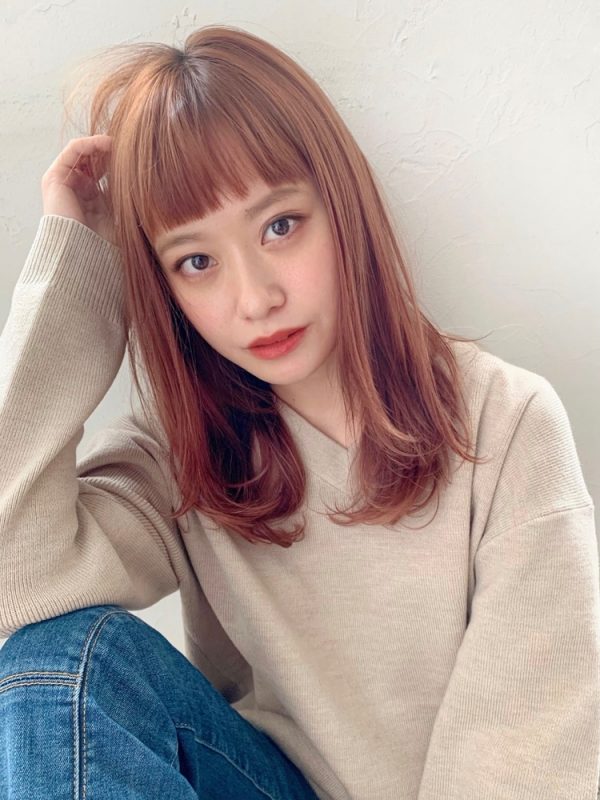 しっかりオレンジみのあるブラウンオレンジカラーは、女性らしさを引き立てる甘めの可愛い髪色ですね。