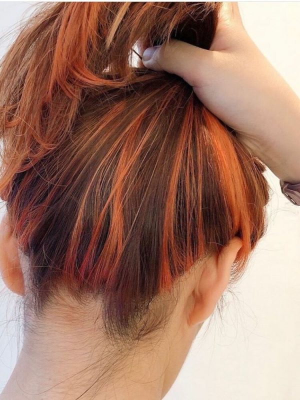 襟足にオレンジのウィービングを入れると、まとめ髪をした時に可愛いスジが見えますよ。