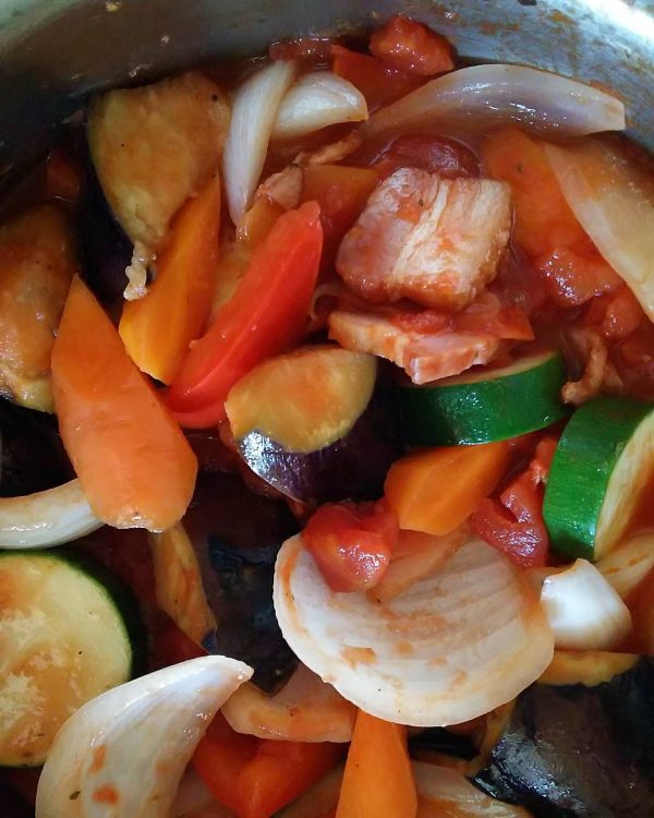 ラタトゥイユはいろいろな野菜を炒めてトマトで煮込んだ料理。