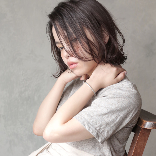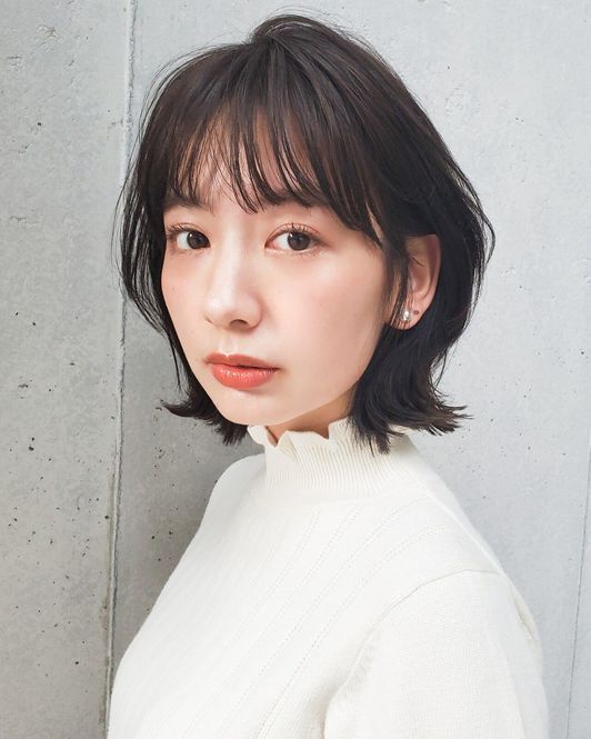 黒髪の重たさを感じさせない、スタイリッシュな外ハネボブヘア♡セミウェットの前髪をかき上げにするで、今っぽい旬のヘアに変身できています。ナチュラル好きな大人女性にピッタリ。