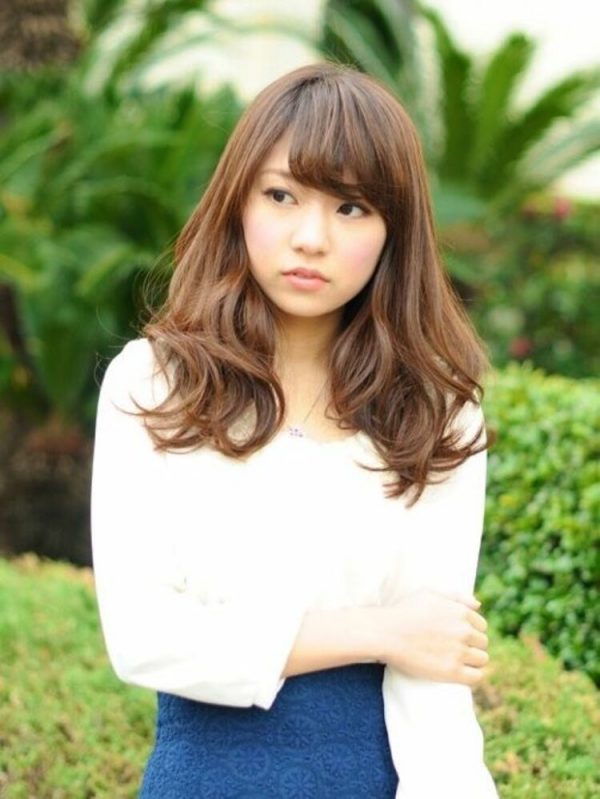 暗髪でボリュームのあるヘアスタイルだとどうしても重くなりがちなので、軽やかさを演出できる種類の前髪にしてあげることで、顔まわりが明るくなります。
