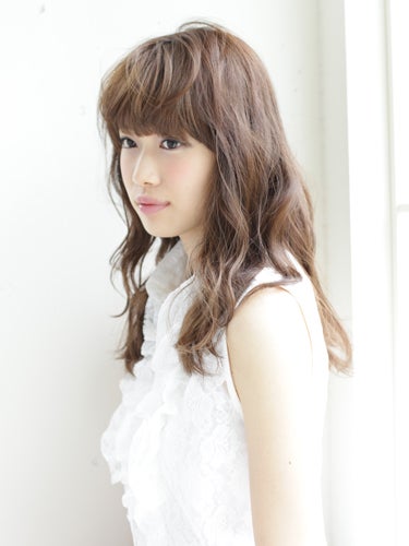シースルーバングにした前髪をさらりと流したヘアスタイルは、大人っぽさが抜群で上品な印象となり、大人の女性にぴったり!