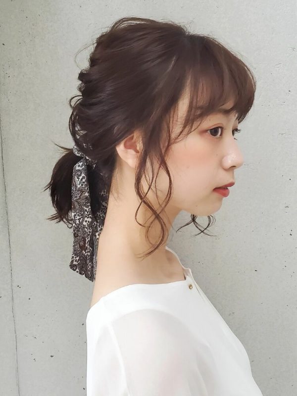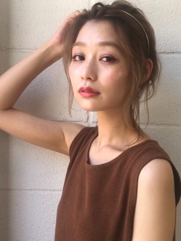 おでこともみあげに後れ毛をすこし残すのが似合わせのポイントです!