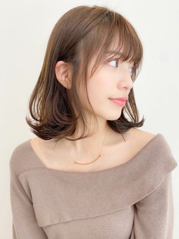 鎖骨下の毛先に少し動きを出して柔らかい雰囲気にするのがGOOD。