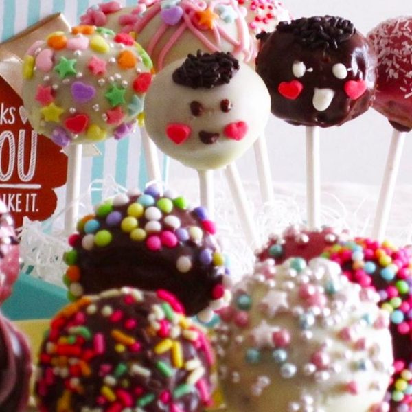 ひと口サイズのケーキポップにチョコをコーティングし、チョコペンやシュガーを使ってデザインした人気のスイーツです。