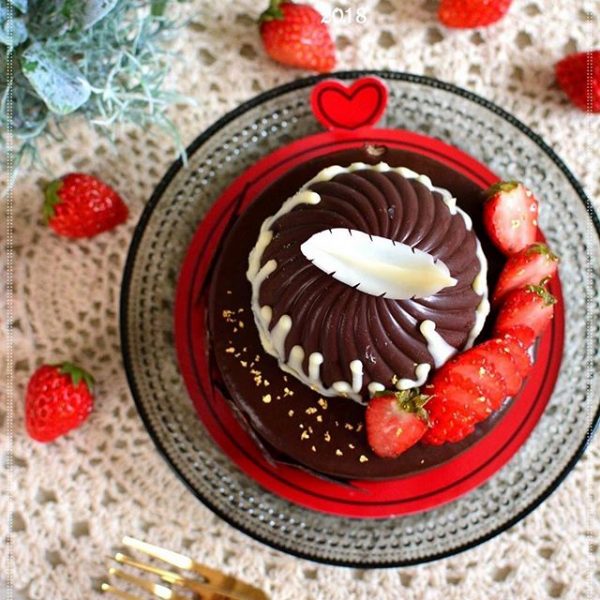 ドーム型になったチョコ細工を乗せてバレンタイン用にしています。まるでお店で販売されているかのような美しさに感動しますよ。