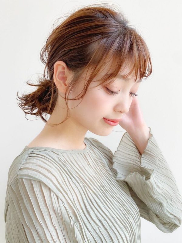 前髪は自然にサイドに流し、程よく大人っぽい流行りの髪型に仕上げましょう。