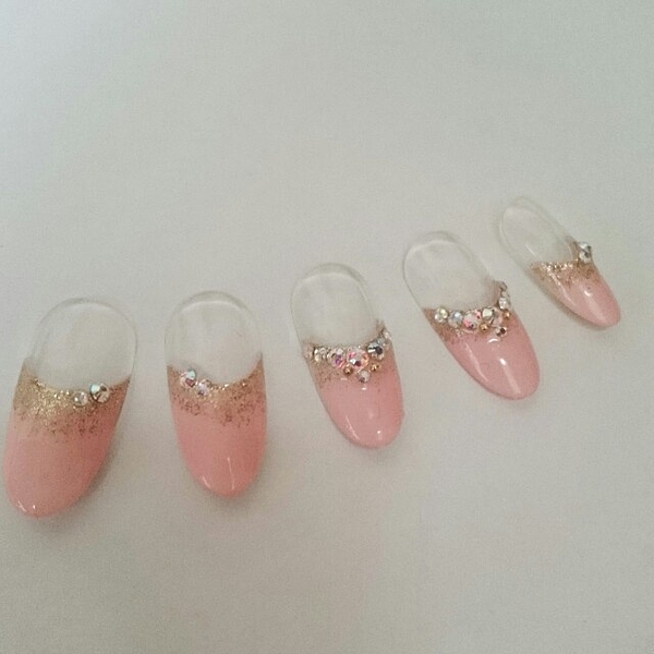ナチュラルだけどラメが華やかなフレンチ。ストーンも飾ればブライダルにも!広めの幅のラメラインがポイント