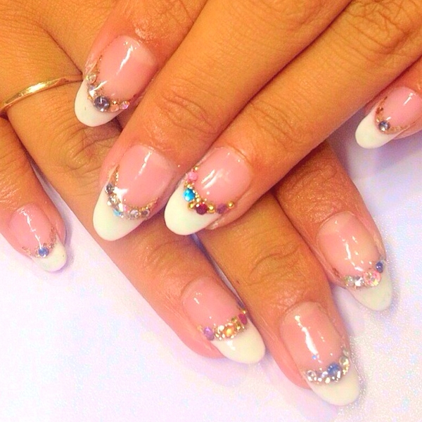 ちょっぴり難易度が高めに見えるこちらのフレンチデザインも、実はよくみるとそこまでレベルは高くありません!ラインに合わせてラメ線とパーツをのせてあげるだけで華やかに