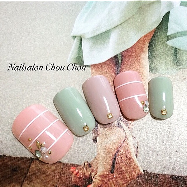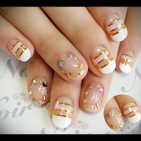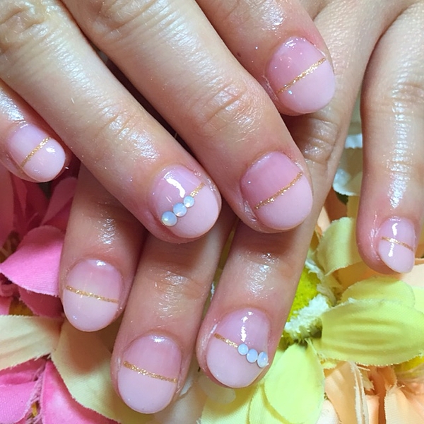 まっすぐ線を引くのができない!という方でも大丈夫。テープを使えばだれでも直線が引けちゃいます。単色×ストーンだけだと少し寂しいですが、これなら華やかに