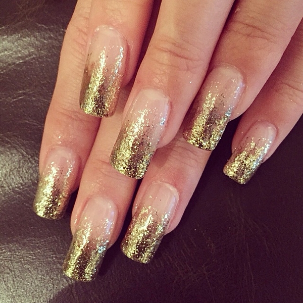 色を二つ使ったパターンのグラデーションネイル。ベースの色とラメカラーを合わせてあげることで統一感がでますよ