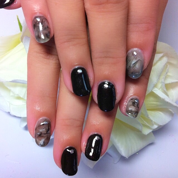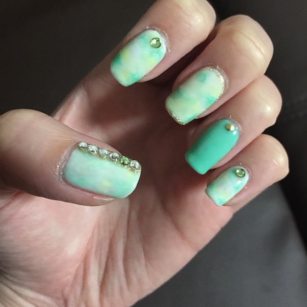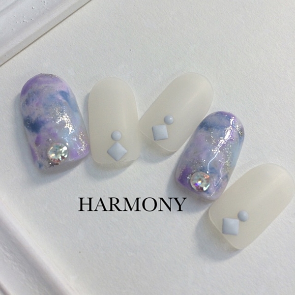 一見難しそうに見えるマーブルですが、同系色をちょんちょんと爪においてつまようじなどで混ぜてあげると簡単にマーブルの完成!