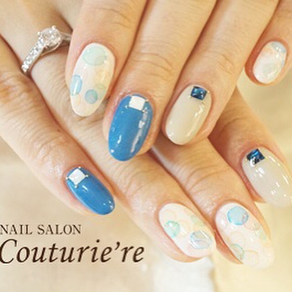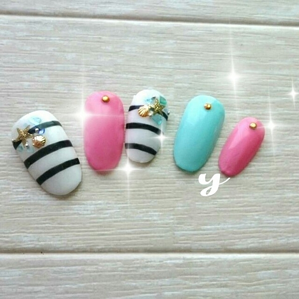 ボーダーマリン風の夏らしいデザインも簡単に。単色カラーも色鮮やかにしてあげれば、ほかに難しいことをしなくても存在感を発揮してくれます