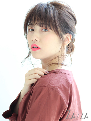 長めに残した前髪はサイドパートで耳掛けに。シンプルながらエレガントな髪型になります。