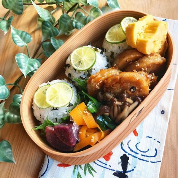 簡単で、冷めても美味しい生姜風味のおにぎりは、おしゃれなプレートやお弁当にもおすすめ。こちらは色あざやかなワンプレートメニューの実例です。