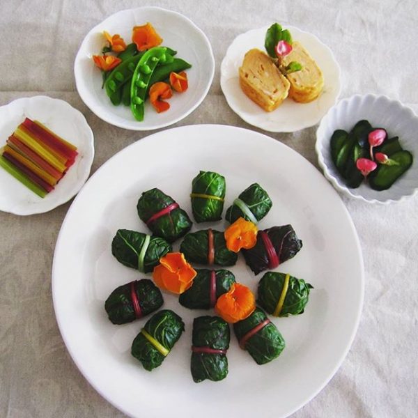 珍しい野菜を使った変わり種おにぎりのレシピをご紹介します。こちらのレシピはスイスチャードという葉物野菜を巻いた珍しいタイプのおにぎり。