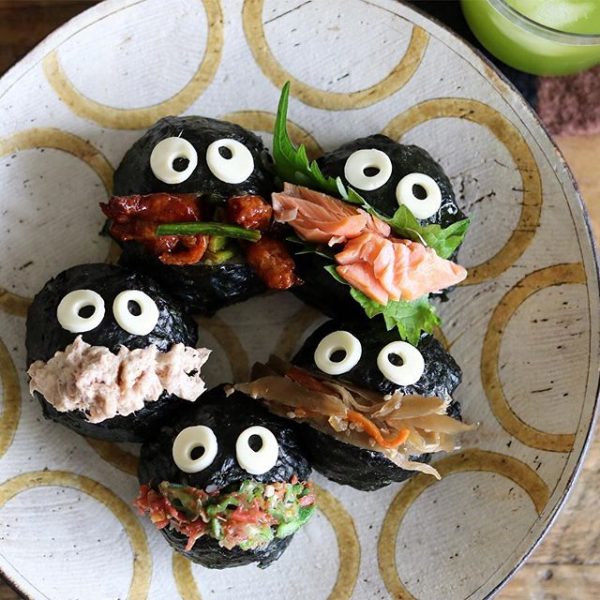 続いてご紹介するおにぎりの変わり種レシピは海苔でくるんだパックンおにぎり。とってもユニークでキュートな見た目は、子供が喜ぶこと間違いなし。
