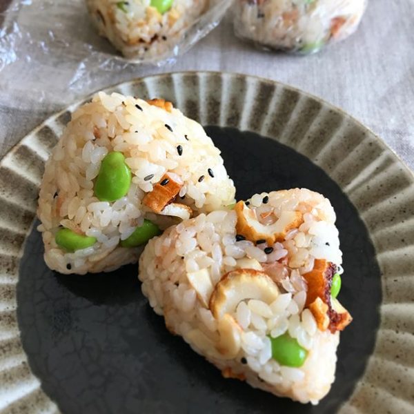 ちくわと枝豆の変わり種おかか醤油おにぎり